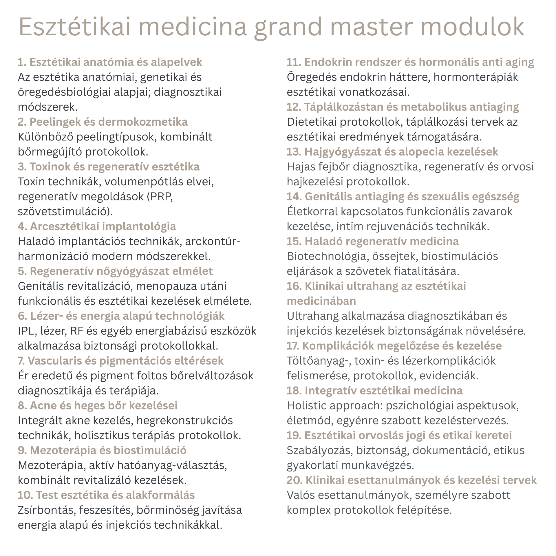 Esztétikai Medicina Grand Master Master Diploma, 60 ECTS